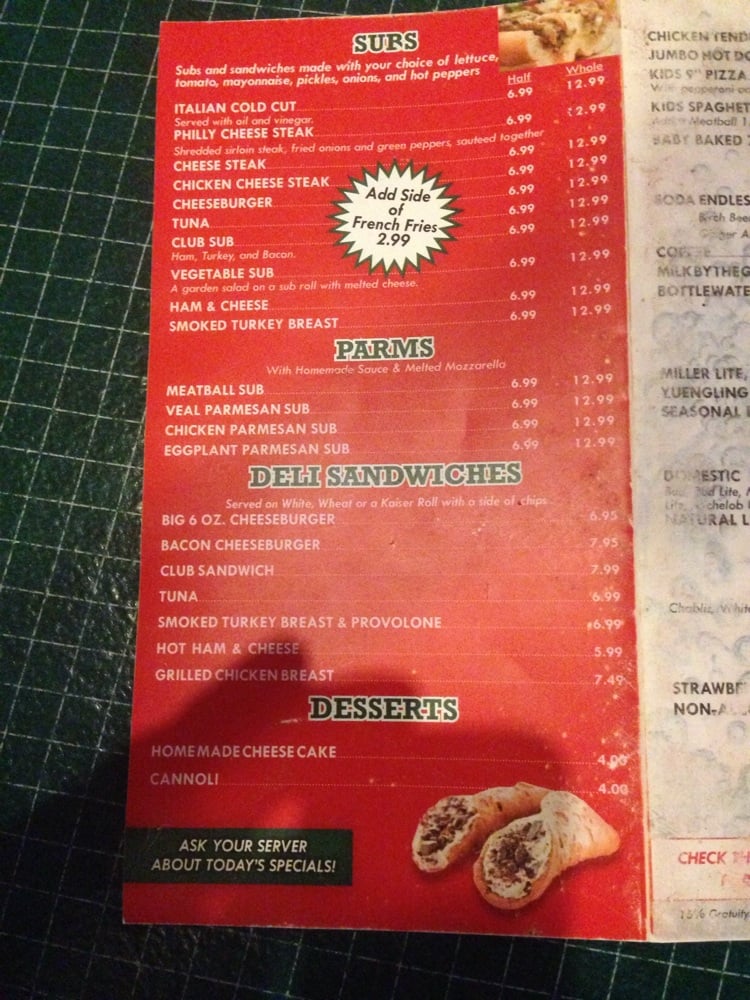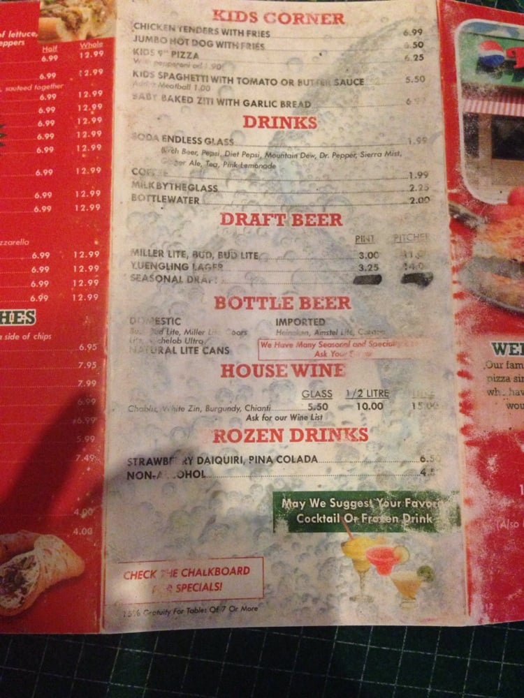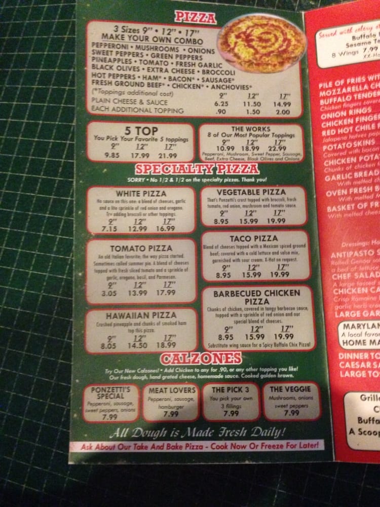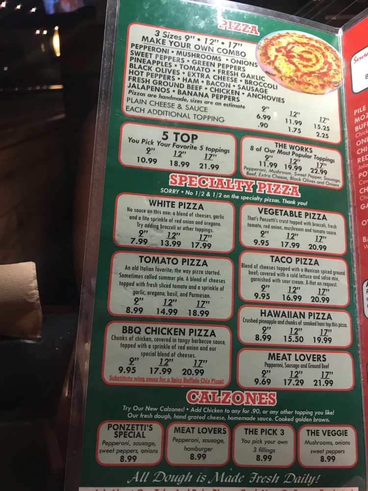 Ponzetti's Pizza Menu